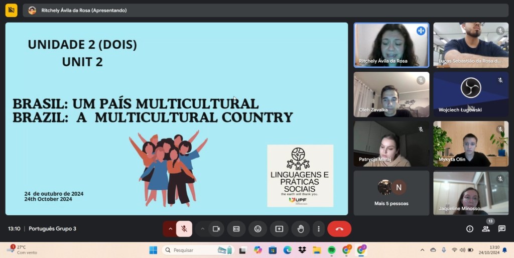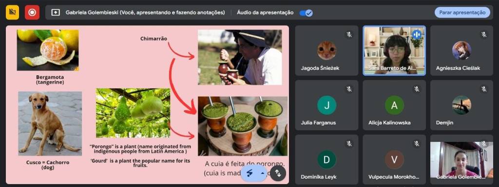 Para atender a essas demandas, estudantes da graduação em Letras e do PPGL UPF têm se dedicado à seleção, adaptação e criação de materiais didáticos, bem como ao planejamento de atividades para os encontros síncronos, que se realizam pelo Google Meet. Além da oportunidade de unir teoria e prática, em uma espécie de estágio internacional virtual, estão aprimorando a prática oral da língua inglesa, que é a língua de instrução/interação nos grupos de iniciantes. Da mesma forma que, por meio das interações ocorridas durante as aulas, os estudantes brasileiros têm a oportunidade de conhecer a cultura polonesa.