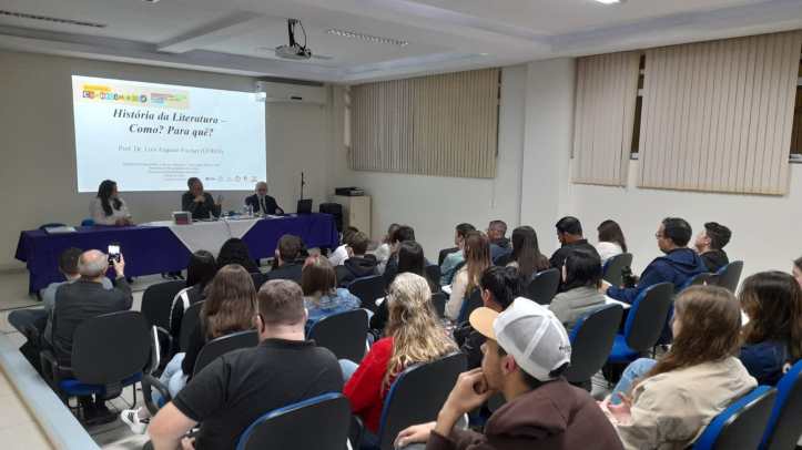 A história da literatura rio-grandense foi presença na XII Semana do Conhecimento da Universidade de Passo Fundo. A noite do dia 11 de setembro foi marcada pela presença do escritor, tradutor, pesquisador e professor Dr. Luís Augusto Fischer (UFRGS), em evento organizado de forma conjunta pelos Cursos de Letras e de História, bem como pelo Programa de Pós-graduação em Letras (PPGL) e pelo Programa de Pós-graduação em História (PPGH) da UPF.